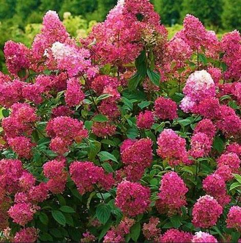 1,5 - 2 m magas, bokros növekedésű, erős levélzetű, felálló ágrendszerű, lombhullató cserje. Levelei sötétzöldek. Virága kúpos, buga virágzatát nagyobb számban steril virágok alkotják. A virágok kezdetben fehér színűek, de fokozatosan piros árnyalatot öltenek, augusztus végére jellemzően egységes piros. Kissé laza, humuszos, tápdús, mészmentes vagy savanyú talajba, napos vagy félárnyékos helyre ültessük.